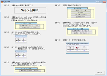 - 受注、売上、売掛、買掛、仕入、在庫管理、相場表管理、市場への発注集計管理(その他機能別途)